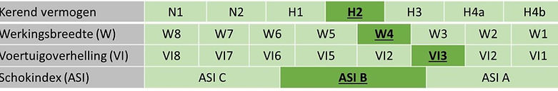 De prestatiekenmerken conform NBN EN1317-1/2/5 zijn:
